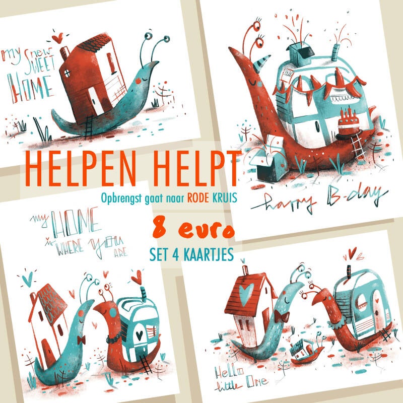 De volledige opbrengst van deze kaartjes wordt gestort op het rekeningnummer van het Rode Kruis. Zij coördineren deze hele hulpactie onder de titel HELPEN HELPT.